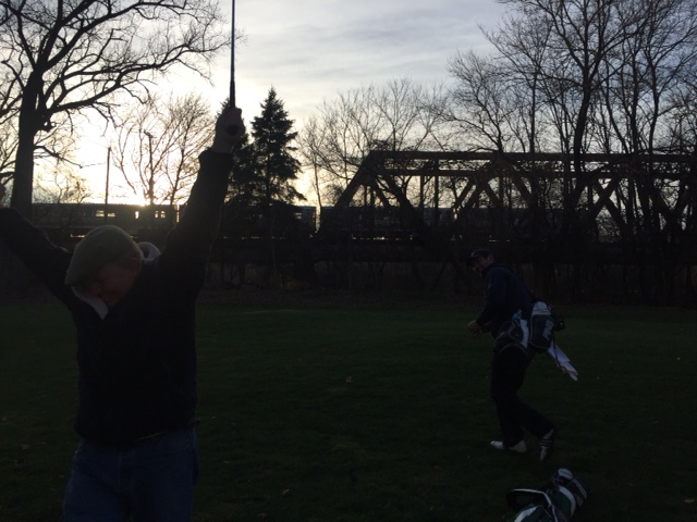 Previous Image Next Image HCRJG-DaveSchmidtTrainshot Celebration at sunset as the final shot sails over the bridge and canal.